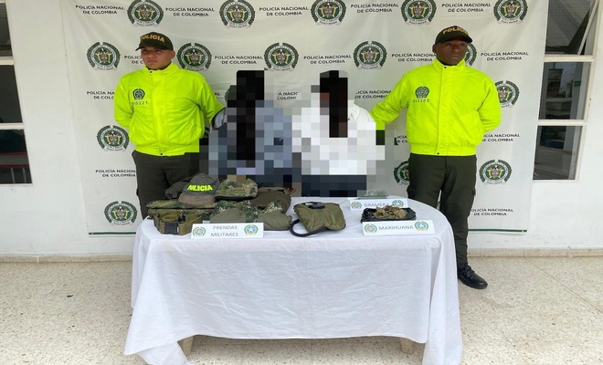 Investigaciones lideradas por la Seccional de Investigación Criminal (SIJIN), en coordinación con la Seccional de Inteligencia Policial (SIPOL) y la Fiscalia General de la Nación, permitieron la captura de dos personas por los delitos de utilización ilegal de uniformes e insignias y fabricación, tráfico o porte de estupefacientes.