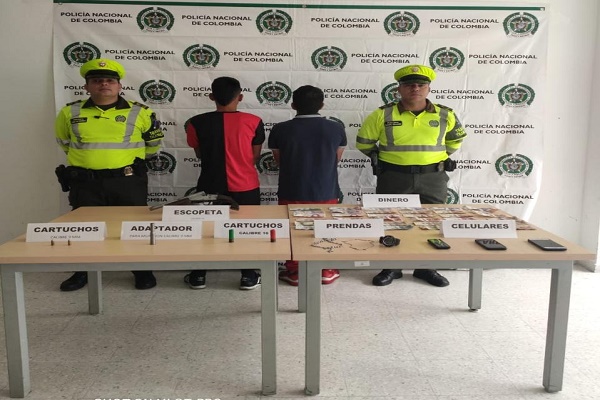 Los efectivos de Tránsito activaron los protocolos de seguridad y observaron dentro del automotor a uno de los delincuentes arrojar un arma de fuego a la parte de atrás, al momento de abrir la compuerta, los uniformados ingresaron y realizaron la captura de dos personas de 22 y 29 años de edad, ambos de nacionalidad venezolana, la incautación de un arma de fuego tipo escopeta con cuatro cartuchos para la misma, un adaptador para 9 mm y la recuperación tres celulares, dos cadenas, un reloj, 751.000 mil pesos y prendas para vestir.