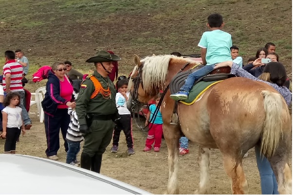 Razón por la cual se realizaron actividades didácticas con esta comunidad, haciendo un recorrido por cada una de las fincas del sector, además, los niños niñas y adolescentes, tuvieron la oportunidad de montar a caballo y realizar rondas infantiles y disfrutaron de una tarde de esparcimiento, beneficiando a 80 personas entre niños y adultos.