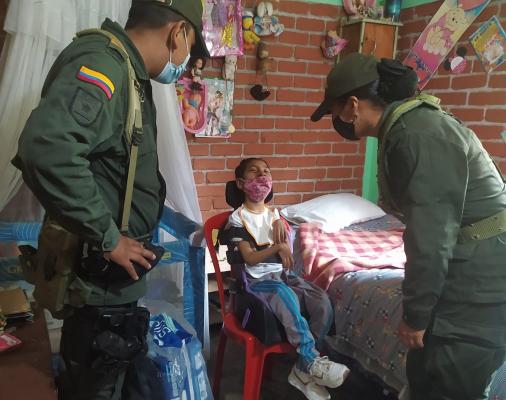 Atendiendo a nuestra vocación de servicio, valor institucional, el Grupo de Prevención y Educación Ciudadana con el apoyo de los integrantes de la Estación de Policía Consacá, visitaron el hogar de una menor de 12 años de edad con discapacidad mental, entregándole un mercado, una cobija, pañales y un oso grande de peluche, llenando sus ojos de emoción y su rostro rebosante de alegría, que hicieron de ese momento algo muy especial.