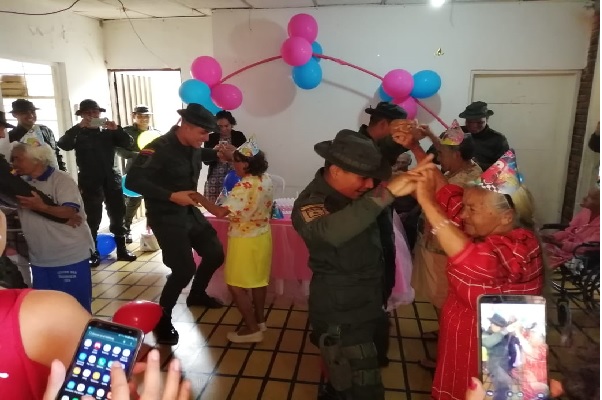 Una grata sorpresa se llevaron Luis, Margarita y Antonio, tiernos abuelos con la fuerza y el espíritu que nadie imagina, la sencillez, el carisma y el amor que a su edad siempre saben brindar; motivados por el cariño que inspiran estos abuelos, los uniformados se dieron a la tarea de organizar una gran fiesta por sus cumpleaños con la complicidad de la comisaria del municipio, Xiomara Estupiñán Guerrero, la Directora de ese centro geriátrico, Betsy Raquel Contreras Albarracín y la creatividad de los policías pertenecientes al Escuadrón Móvil de Carabineros, quienes dejaron a un lado su armamento para inflar globos y colocar las guirnaldas de la decoración.