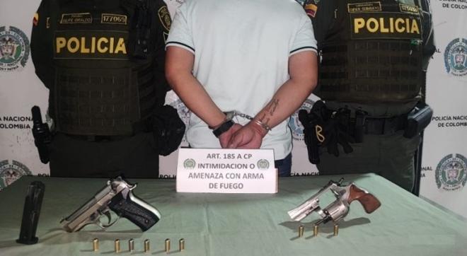 En el municipio de Quimbaya la Policía Nacional capturó a una persona por el delito de intimidación o amenaza con arma de fuego, elementos o dispositivos menos letales, toda vez que con un arma traumática realizó tres disparos, cuando se encontraba en su vivienda en alto grado de alicoramiento.