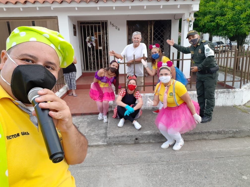 Con cantos, bailes y un mensaje de aliento, los policías expertos y capacitados en recreación, animan a miles de familias vallecaucanas.