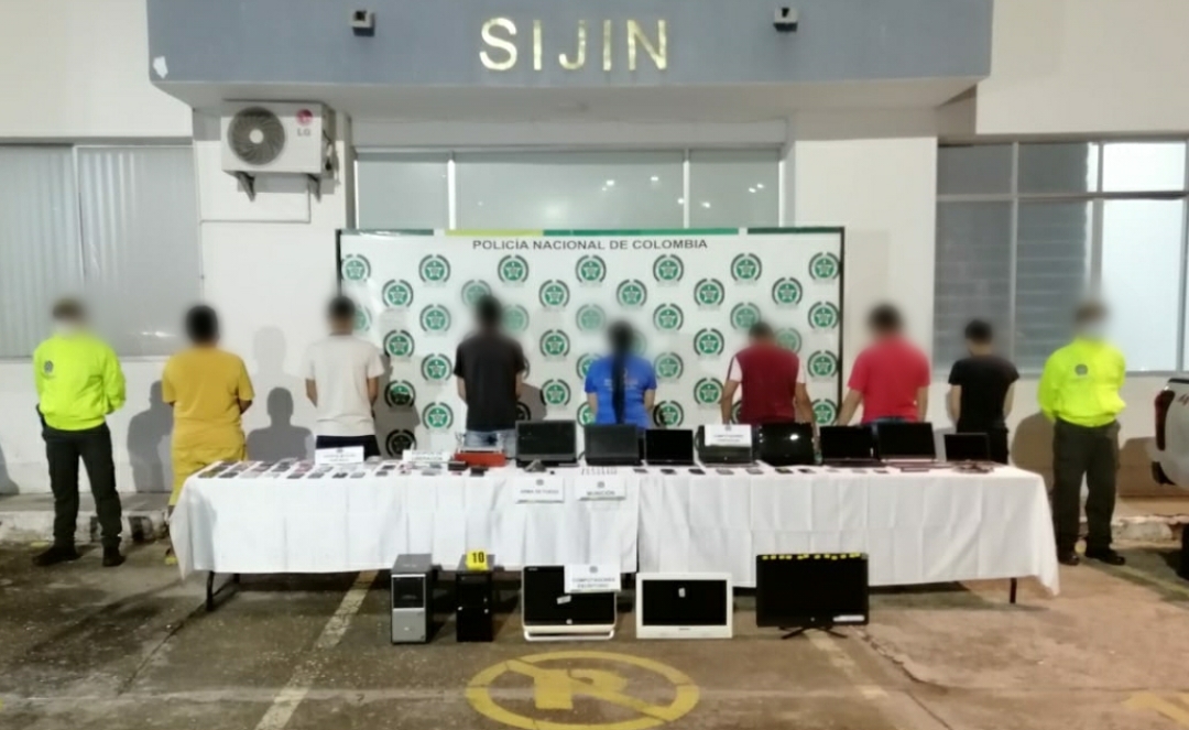 Durante el gigantesco operativo que dio con la captura de estas 7 personas se logró la incautación de los siguientes elementos: 48 equipos celulares con reporte de hurto, 3 computadores portátiles con programas para “hackear” celulares, 1 caja liberadora con cables adaptadores, 1 arma de fuego tipo pistola calibre 22, 4 llaves tipo USB para liberación de celulares y 1 adaptador USB múltiple.