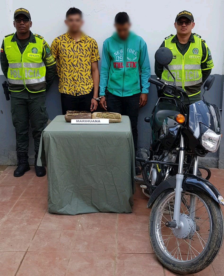 En desarrollo de la tercera fase del plan choque, el que la hace la paga, “construyendo seguridad”, se logró la captura de dos sujetos, quienes se movilizaban en una motocicleta y transportaban 1.060 gramos de marihuana.