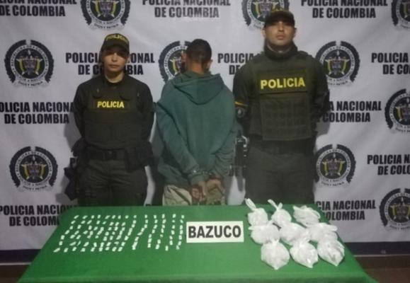 El hecho se presentó en el barrio Valencia del municipio de Calarcá, cuando se requiere a un ciudadano para practicarle un registro, verificando un bolso que portaba el ciudadano encontrando en el interior 1000 dosis de base de coca.