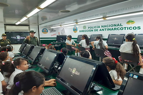 Más de ciento veinte niños asistieron a la cita con el bus interactivo en el que escucharon charlas de sensibilización, vieron videos de dibujos animados explicando el peligro del consumo de drogas como la marihuana, el alcohol y el cigarrillo, entre otras, y jugaron a responder preguntas sobre las drogas.