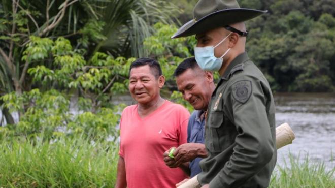 Con el propósito de generar un acercamiento con los ciudadanos en el Vaupés y fortalecer los lasos de confianza y credibilidad para con nuestra Institución, la Policía Nacional se traslada hasta las comunidades indígenas de la tierra brava de la selva y el raudal, la lluvia y el tinieblo rio Vaupés es la ruta a seguir para llegar hasta estos lugares en medio de la selva espesa y gigantesca. Allí en las comunidades indígenas trabajamos enfocados en lograr una mejor percepción de nuestra labor diaria, compartimos a través de las diferentes campañas de prevención un mensaje de conciencia, orientación y ayuda sobre temas de violencia intrafamiliar, reclutamiento ilícito a menores de edad y las recomendaciones de autoprotección para prevenir el contagio del coronavirus, contando con la participación de los habitantes incluyendo los niños, niñas y adolescentes de las comunidades indígenas.