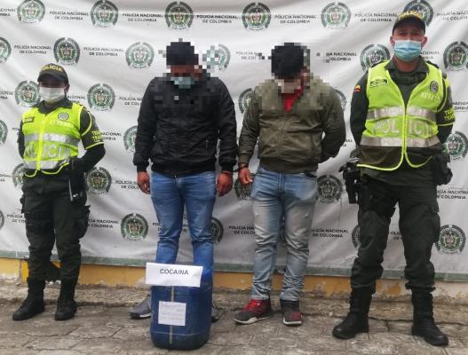 En el tramo vial Pasto – Higuerones, sector La Macarena del municipio de Buesaco, uniformados detuvieron y registraron un vehículo en el cual se movilizaban dos sujetos, que transportaban una caneca y en su interior encontraron un líquido aceitoso al cual se le realizó la Prueba de Identificación Homologada (PIPH), resultando ser clorhidrato de cocaína, esta sustancia fue avaluada en 37 millones de pesos.