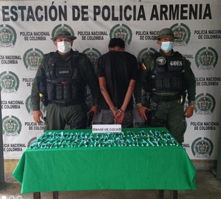 Mientras uniformados de la Policía Nacional realizaban labores de vigilancia y control, logran la captura de un hombre de 32 años de edad en el barrio Buenos Aires en Quimbaya.