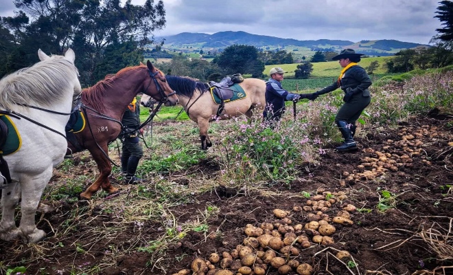 Los carabineros que recorren las veredas de Bolívar a lomo de caballo