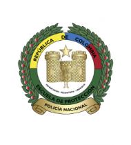 CARACTERÍSTICAS. El distintivo de la Escuela de Policía en Protección y Seguridad tendrá Forma circular, en oro y cargado sobre este estará un circulo dividido en cuatro secciones, con los colores de la Bandera Nacional, el color amarillo, azul y rojo ocupa la mitad del semicírculo con leyenda en sable “REPÚBLICA DE COLOMBIA”, en el semicírculo inferior de color verde institucional que contendrán en letra en sable “ESCUELA DE PROTECCIÓN”; el fondo del circulo es de color oro, sobre la parte superior llevará cimado en oro una estrella de cinco puntas y debajo de ella un castillo custodiado por el Arcángel San Miguel, con la leyenda en latín PATROCINIUM- SECURITATIS-LIBERTATIS, rodeará el escudo una corona de laurel, con hojas nervadas en sable y frutadas hacia el interior en gules, seis veces a la diestra y cinco a la siniestra. En la parte inferior una cinta de oro ensortijada al interior en sus extremos, con la divisa en sable “POLICÍA NACIONAL