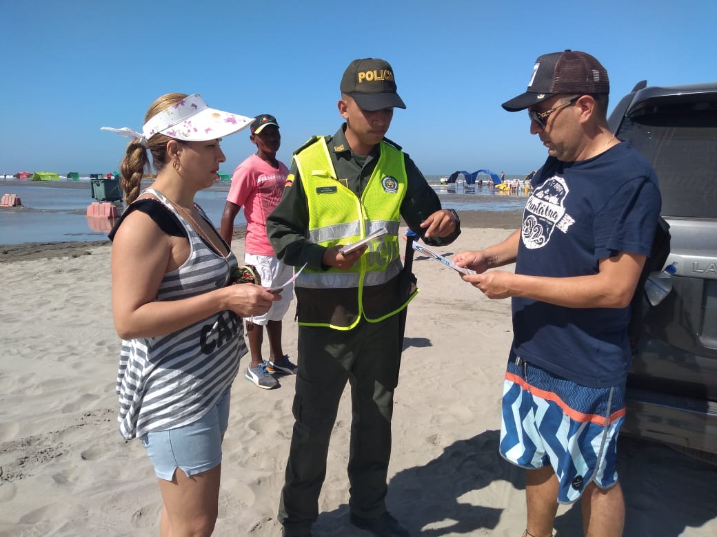 La longitud del estandarte es de 2.00 mts de largo por 1.20 de ancho, está conformada por dos franjas horizontales, cada una de 0.60 mts de ancho, la superior es de color azul y la inferior de color rojo. El azul significa identidad de propósitos, la ecuanimidad y la idoneidad profesional, que se une a la franja roja para interpretar la decisión de llegar hasta el sacrificio con el derramamiento de la propia sangre si es necesario, en defensa del lema del instituto “INTEGRIDAD Y ORDEN”. Además, el recordar el otro significado de los dos últimos colores del Pabellón Nacional, que simbolizan el cielo y las aguas del Mar Caribe, las ciénagas y lagos, como región lacustre de la patria, en que para lograr su libertad e independencia, fue necesario el holocausto de los ancestros libertadores y hacedores de la nacionalidad, al crearse la República. También se considera que es tributo a la bandera Nacional.