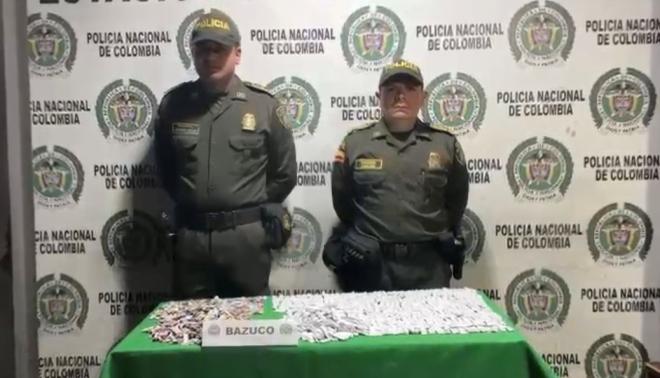 El caso fue atendido por parte del cuadrante 9, momentos en que se encontraban realizando labores de patrullaje por el barrio Santa Fe de Armenia, en zona boscosa, tras recibir información de fuente humana, empiezan la búsqueda logrando encontrar bajo tierra, dos caletas las cuales en su interior contienen dos bolsas de color negro con 700 envolturas de papel cuaderno y 800 de papel revista para un total de 1.500 envolturas de bazuco.
