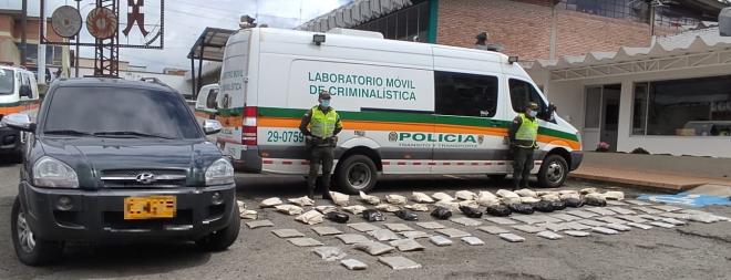 Los uniformados mediante labores de patrullaje sobre este importante tramo vial, se percatan del abandono de un vehículo tipo camioneta al costado de la vía, por lo cual deciden verificar su interior, encontrando ocultos y envueltos en plásticos un total de 48.500 dosis de marihuana, las cuales están avaluadas en $38.800.000; el vehículo en el cual se halló esta sustancia esta avaluado en $30.000.000 millones de pesos y era solicitado por la Fiscalía Uri de Cali, por el delito de hurto. La sustancia y el vehículo incautados fueron puestos a disposición de la Fiscalía General de la Nación de turno URI Pasto.
