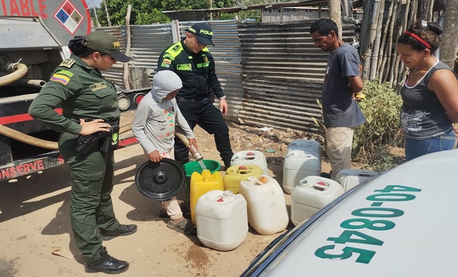 La falta de agua potable en municipios y especialmente en zonas rurales de esta región del país, está provocando una emergencia social, por eso la Policía Nacional, en coordinación con autoridades municipales, ha venido mitigando el impacto a través de la entrega del preciado líquido.