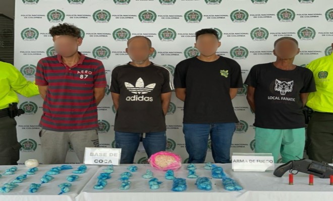 Luego de un trabajo investigativo y metodológico desarrollado por las unidades investigativas en el despliegue y sostenibilidad del Plan Integral contra el Tráfico Local de Estupefacientes: "Todos contra las drogas”, realizaron Cinco diligencias de registro de allanamientos en el barrio la Trinidad sector el hueco, logrando cuatro importantes capturas en flagrancia y la incautación de cuatro kilos de marihuana, 3.6 kilogramos de base de coca, una licuadora, un arma de fuego tipo chungón de fabricación artesanal con cuatro cartuchos, calibre 16, empaques para dosificación de sustancias estupefacientes y la suma de 7.600.000 en efectivo, producto de la venta del alijo.