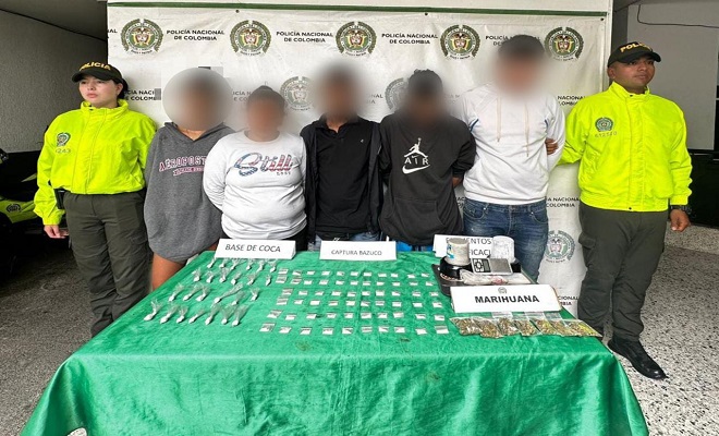 La Seccional de Investigación del Criminal del Quindío, logró la captura de 5 personas en flagrancia, por el delito de tráfico, fabricación o porte de estupefacientes, mediante la ejecución del Blanco de Oportunidad BOPOR “Los del Barrio” en el municipio de Quimbaya.
