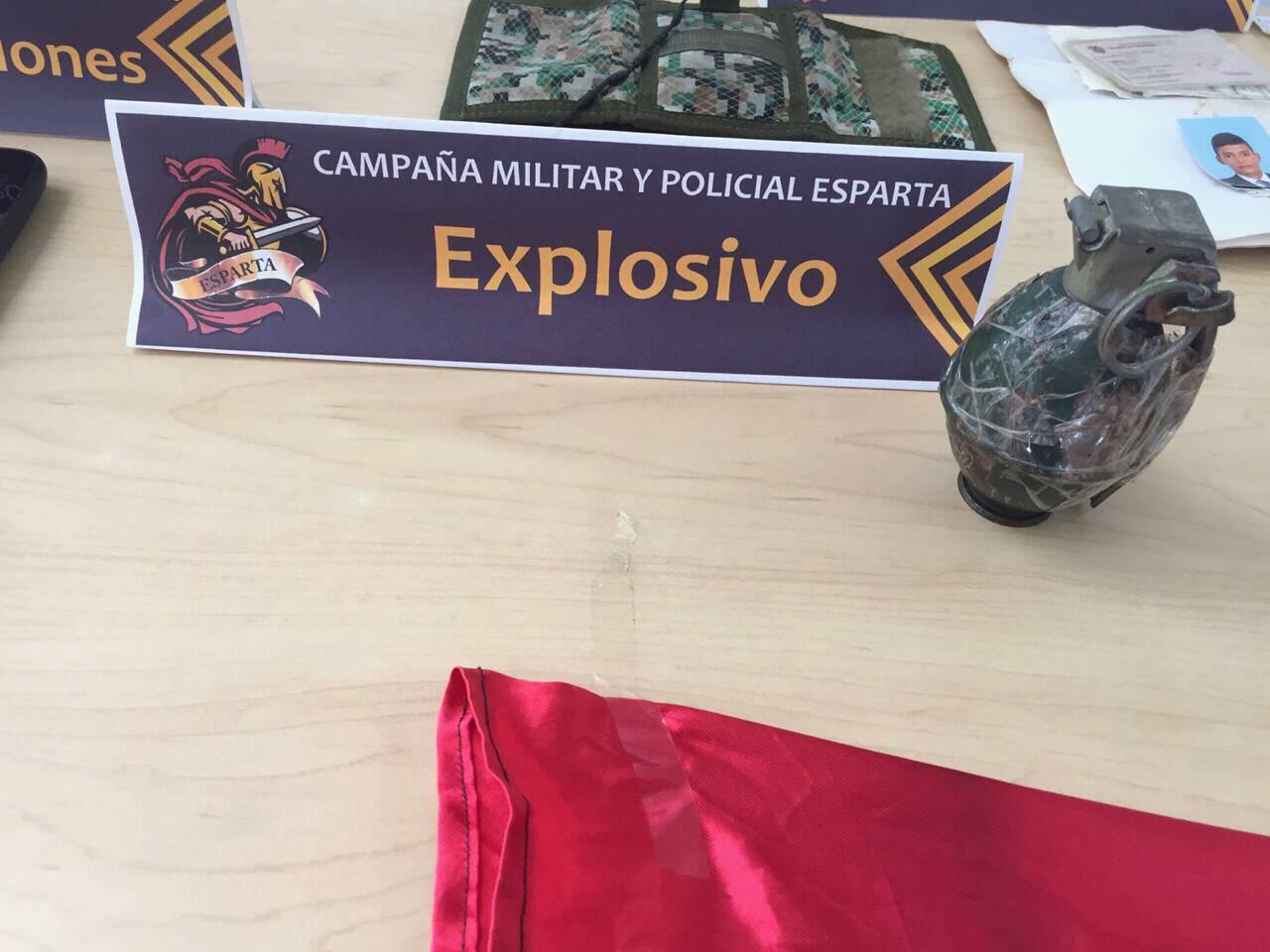 “Pum” es el encargado de realizar acciones terroristas contra funcionarios de la Fuerza Pública en el municipio de Tibú. En la operación se logró la incautación de material bélico y logístico: tres pistolas, una mina antipersonal Claymore, un artefacto explosivo improvisado tipo sombrero, una granada IM26, cuatro detonadores eléctricos, una bandera alusiva al ELN, cuatro celulares, un tester de electricidad y documentos que serán analizados por la policía Nacional.