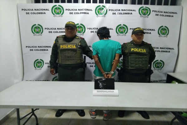 Continuando con los diferentes operativos contra la droga y el delito, el departamento de Policía Tolima se permite informar que siendo aproximadamente las 10:00 de la noche, momentos en que personal del cuadrante realizaba patrullaje de rutina por la carrera 5 barrio centro del municipio de Ortega, logran la captura en flagrancia de un sujeto de 41 años de edad conocido como ‘nanaguana’, a quien mediante registro a personas se le hallo en su poder un paquete prensado con 400 gramos de marihuana equivalentes a cerca de 800 dosis.