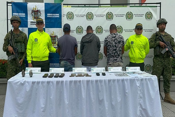 Una operación conjunta entre la Policía Nacional y la Armada Nacional lograron la captura de alias ‘Muelas, Motorista y Mocho’, presuntos integrantes de un grupo delincuencial dedicados a adecuar explosivos de alto impacto para atentar contra la fuerza pública.