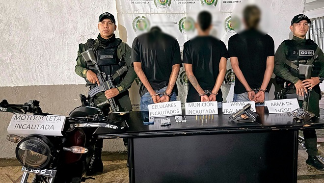 En desarrollo de la estrategia integral contra el Multicrimen y en el marco del Plan Cazador, la Policía Nacional en Santander, a través del Grupo de Operaciones Tácticas Urbanas (OTU) y el comando del Distrito Policía Sabana de Torres permitió prevenir posibles actos que atenten contra la vida e integridad de las personas al capturar en flagrancia a tres (3) ciudadanos.