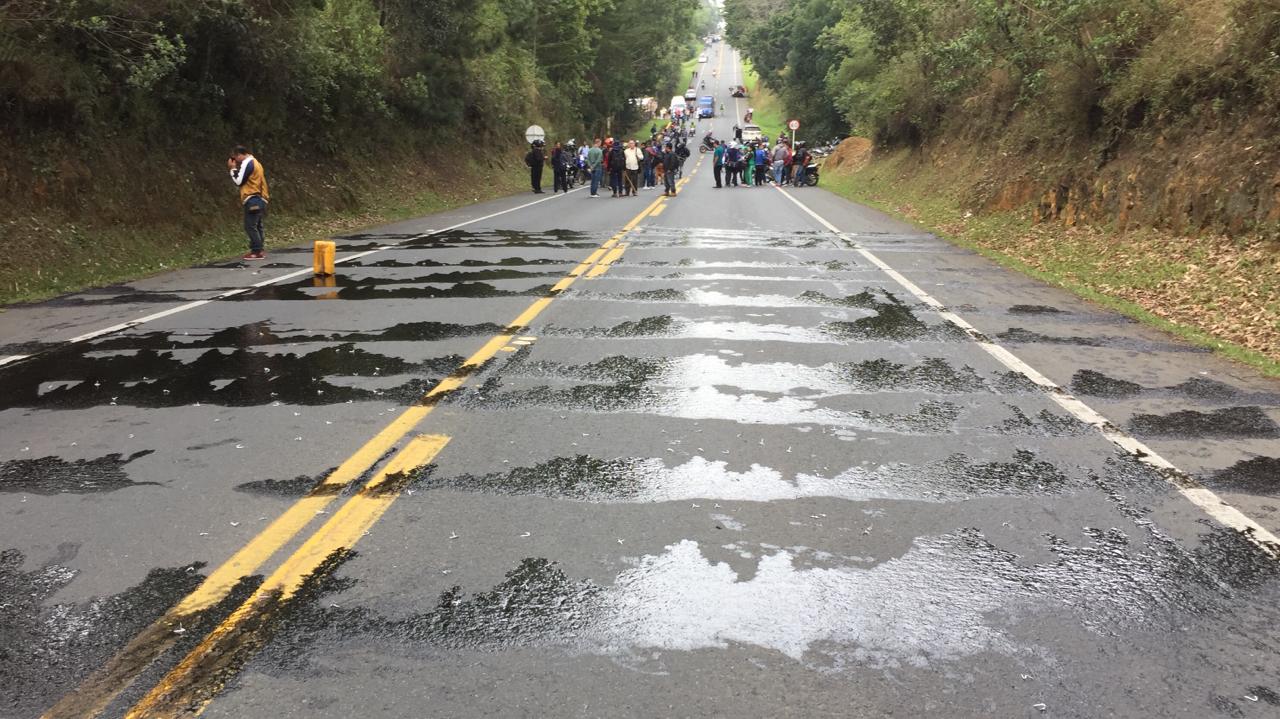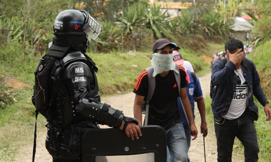 - La Policía Nacional de todos los colombianos, rechaza las vías de hecho desarrolladas por algunos manifestantes en el sector, quienes rosearon una sustancia aceitosa y elementos punzantes, sobre el corredor vial internacional poniendo en riesgo la integridad física de los transeúntes.