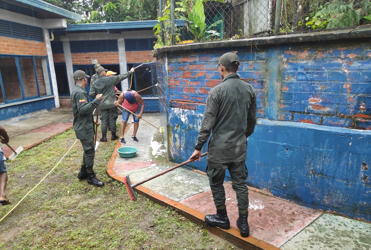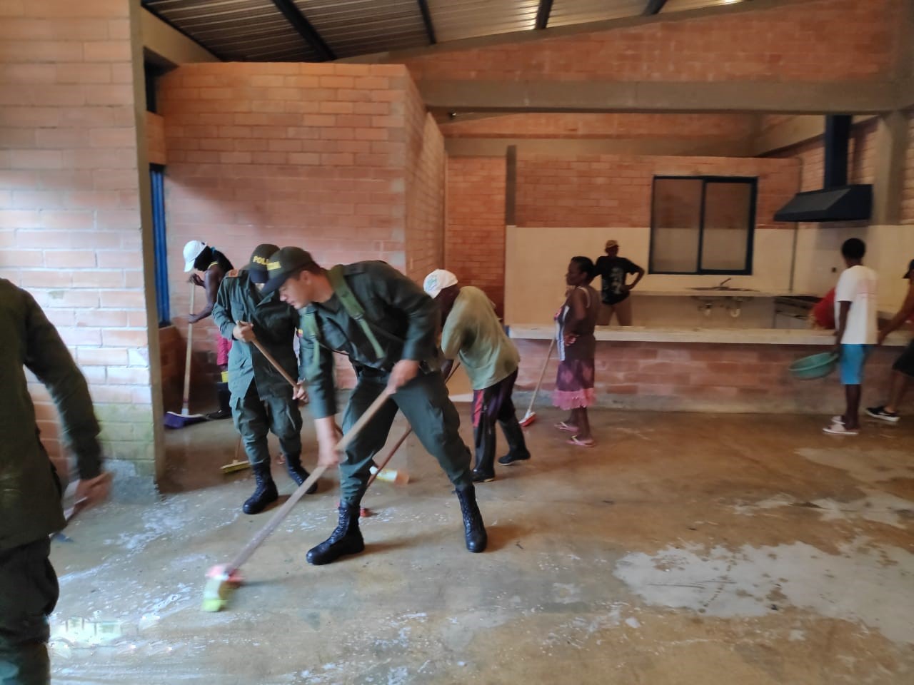 En desarrollo de la tercera fase del Plan de Choque, “Construyendo Seguridad” la Policía Nacional en el municipio de Bagadó en coordinación con la secretaria de integración social realizó una jornada de ornato, aseo y recuperación del centro de Infancia y familia, el cual se encontraba en estado de abandono y que fue destinado por el municipio para que los adultos mayores realicen sus actividades recreativas y deportivas.