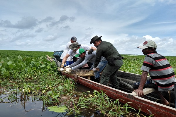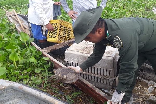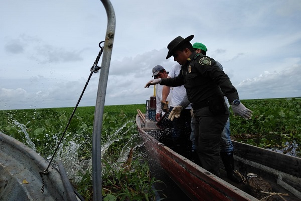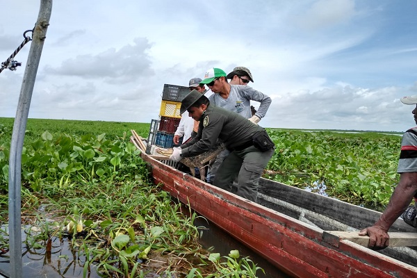 La Policía Nacional, en coordinación con la fundación ‘OMACHA’ y el apoyo de funcionarios de la CVS y comunidad en general, realizó la liberación de 140 especies de fauna silvestre (hicoteas, babillas y boas) en la ciénaga grande de Lorica, Córdoba.