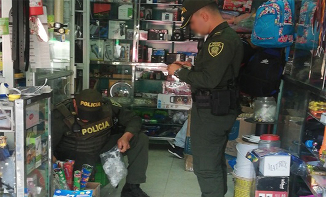 Por otra parte, con las patrullas adscritas al Modelo Nacional de Vigilancia Comunitaria por Cuadrantes, se realizó la incautó 40 kilos de pólvora, que sin permiso de la alcaldía estaban siendo comercializados de manera clandestina desde una cacharrería ubicada en la plaza de mercado municipal, en donde estos artefactos fueron encontrados entre varias cajas exponiendo a los clientes y los mismos trabajadores en el negocio.