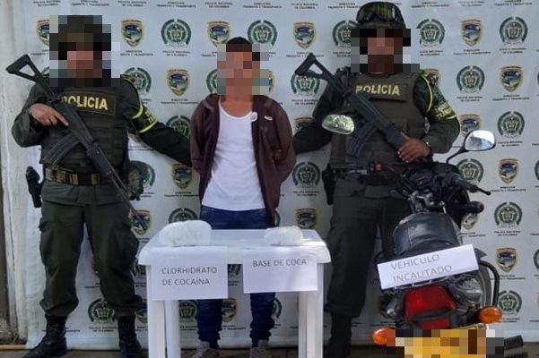 El hombre capturado será presentado ante la autoridad competente en turno de Aguachica por el delito de tráfico fabricación o porte de estupefacientes, las sustancias están avaluadas en la suma de ocho millones y la motocicleta en cuatro millones de pesos.