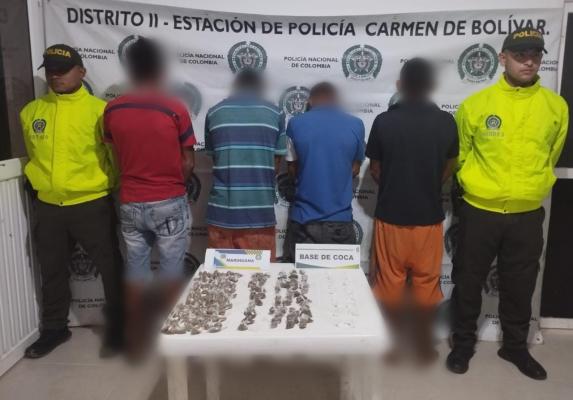 En los allanamientos fueron incautados 180.3 gramos de base de coca, 49 gramos de "bazuco" y 166 gramos de marihuana.