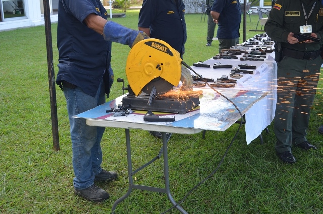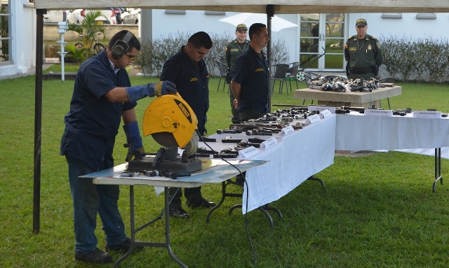 De igual forma, en diferentes procedimientos policiales se han incautado 185 armas de fuego, en aplicación al Decreto 2535 de 1993 y la Ley 906 de 2004 Código de Procedimiento Penal, las cuales posteriormente son entregadas al departamento de control de comercio de armas para su respectiva destrucción, y estos residuos a su vez son llevados a una empresa siderúrgica para su respectiva fundición.
