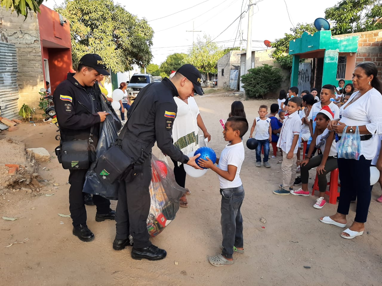 El departamento de Policía Guajira a través del escuadrón móvil antidisturbios (ESMAD), organizó una jornada de actividades lúdicas y recreativas, dicha actividad se llevó acabo en el barrio primero de marzo de la cuidad de Riohacha, esto, con el objetivo de contribuir a la felicidad de aproximadamente 100 niños al hacer entrega de maravillosos regalos. También buscamos promover mensajes preventivos dirigidos a los menores de edad en cuanto al uso irresponsable de la pólvora.