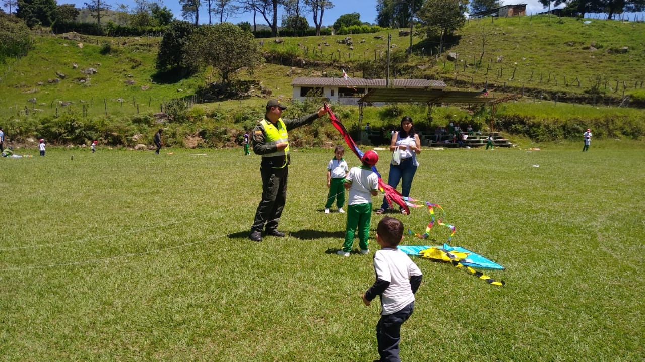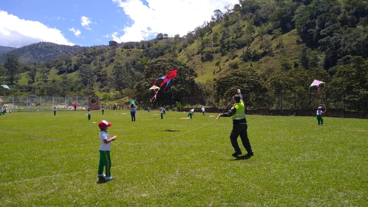 Integramos un aproximado de 100 niños, niñas y adolescentes que se unieron de manera voluntaria y disfrutaron de esta jornada recreativa, elevando cometas en la cancha de futbol del Municipio de ‘Coromoro’, aprovechando la temporada de vientos, la cual es ideal para realizar este tipo de actividades lúdico recreativas.
