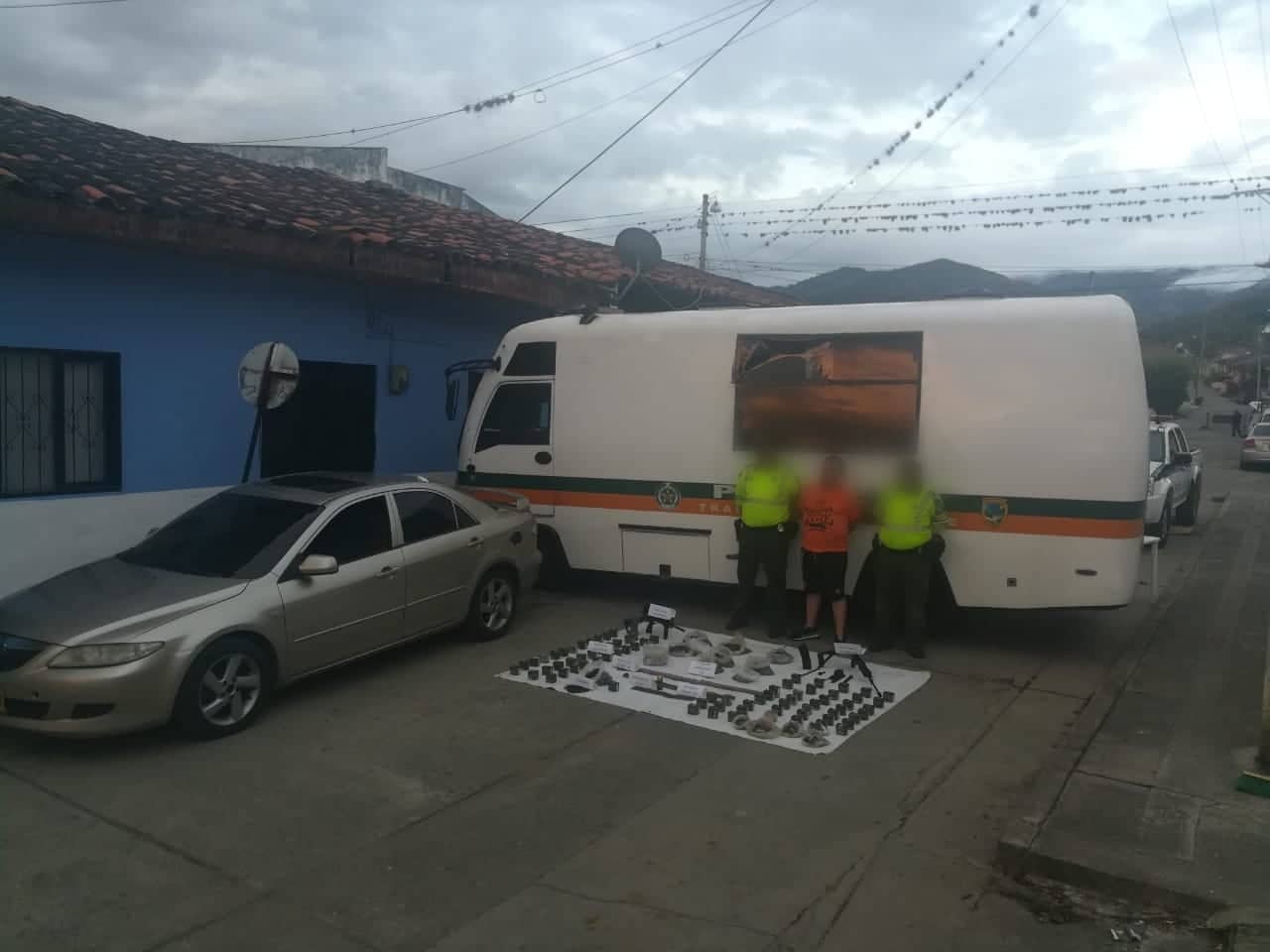 - En la vía Mediacanoa- la Virginia peaje toro, mediante actividades de registro y control incautamos un vehículo, dos fusiles 556 y dos proveedores, 2695 cartuchos calibre 5.56, 1919 cartuchos 7.62 AK para fusil, 163 cartuchos americanos 7.62, 99 cartuchos calibre 30, una granada de 40 mm y 383 eslabones para munición 7.62, se realiza señal de pare a un vehículo con una actitud sospechosa, es trasladado a la estación de policía Toro para un registro minucioso, una vez se encuentra el compartimiento oculto.