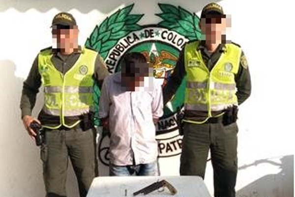 En otro punto de este lugar en la carrera 15 es detenido otra persona a quien se le incauto un arma de fuego calibre 38 mm, con un cartucho calibre 38 para el mismo, el ciudadano en mención fue dejado a disposición de la autoridad competente donde deberá responder como presunto responsable del delito de tráfico fabricación o porte de armas de fuego, municiones y/o partes.