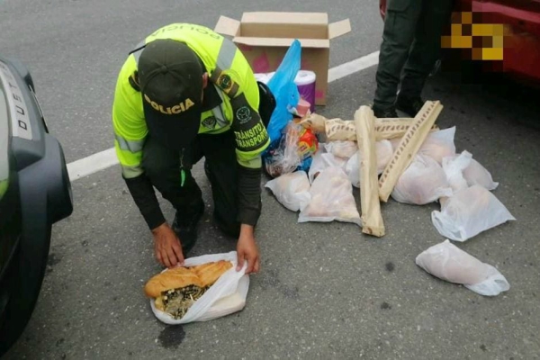 Es así como al notar a las personas nerviosas los uniformados deciden realizar registro e identificación a personas y vehículos donde en el primero automotor, se logró la captura de tres sujetos de, 34, 36 y 23 años de edad todos residentes en la ciudad de Bogotá, este último conductor del vehículo automóvil, sandero, color rojo, avaluado en $40.000.000, donde al registrar el vehículo en la parte interior del baúl, hallan una caja de cartón la cual en su interior contenía pan, la cual causo curiosidad ya que era bastante el peso para ser solo pan motivo por el cual abrieron los mismos hallando dentro de los panes 100 cartuchos calibre 38 milímetros especial y 50 cartuchos calibre 7.65 milímetros, siendo capturados de inmediato.