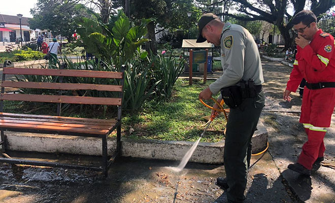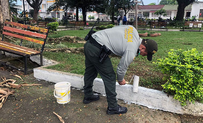 En desarrollo del Plan de Movilidad y Seguridad Semana Santa “Juntos Construimos Convivencia y Seguridad”, el Departamento de Policía Meta a través del Grupo de Protección al Turismo Y Patrimonio Nacional, realizó una jornada de recuperación y embellecimiento en el municipio de Guamal, para garantizar y brindar más “entornos seguros” a la comunidad y turistas que llegan a disfrutar en familia de las actividades litúrgicas y sitios turísticos durante la Semana Mayor.