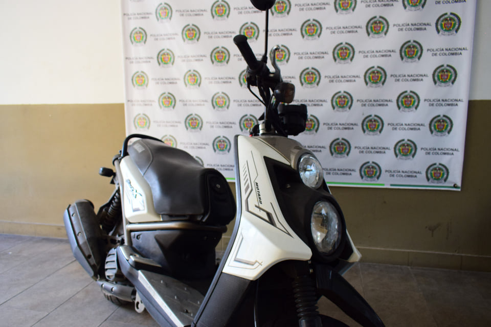 En atención a la estrategia integral contra el hurto a motocicletas, el departamento de Policía Tolima se permite informar que siendo aproximadamente las 03:44 de la tarde, momentos en que personal del cuadrante realizaba planes diferenciales, así como actividades preventivas en contra de la propagación del COVID-19, sobre la manzana L1 barrio Arkabal del municipio de el Espinal, se logró la captura en flagrancia de un sujeto de 37 años, momentos en que este sujeto intimidaba con arma blanca a una mujer, despojándola de una motocicleta BWS 125x color blanco avaluada en cerca de $8.000.000.