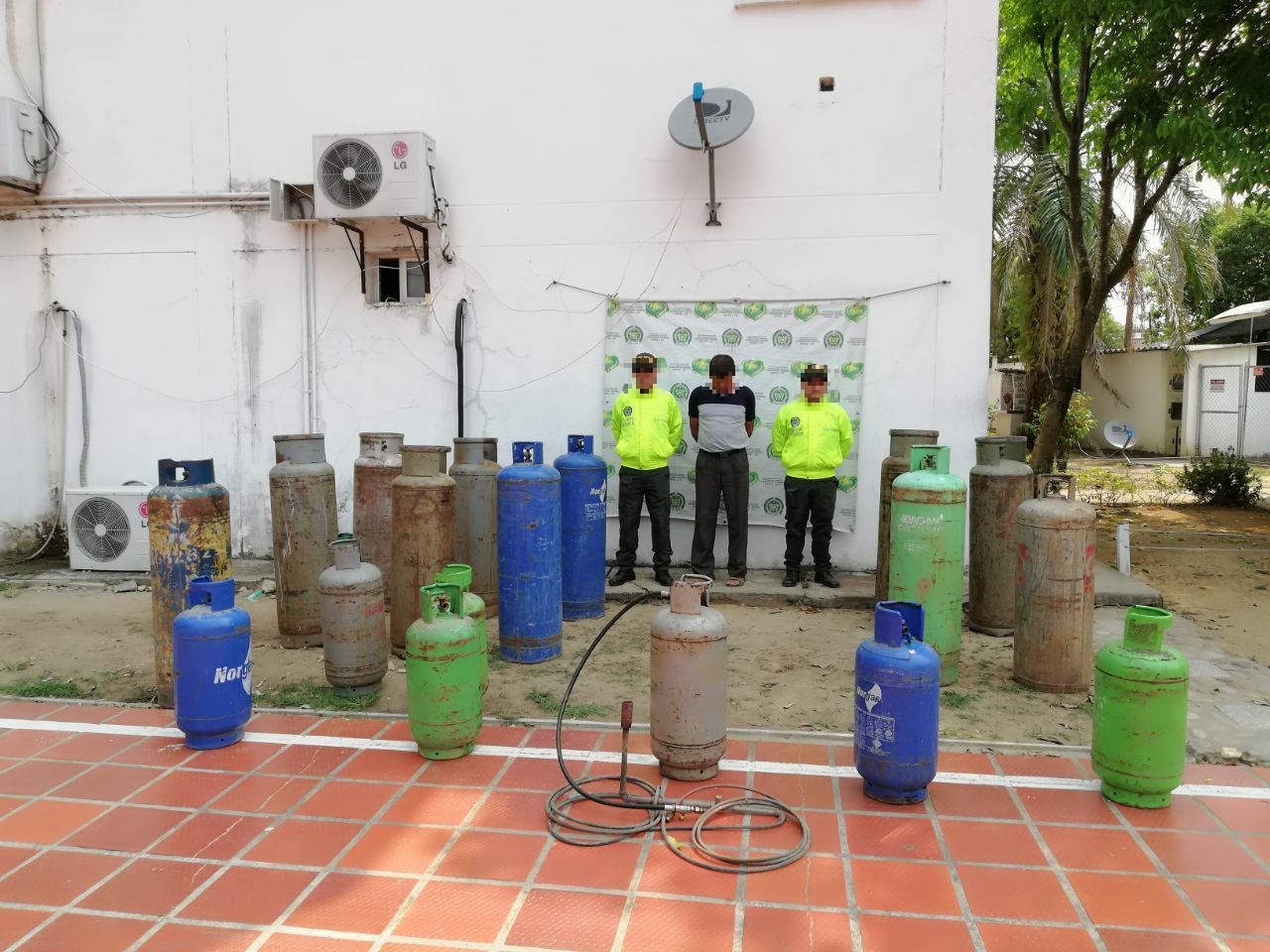 En el lugar de los hechos fueron encontrados 18 cilindros de gas de 11 libras y 7 cilindros  de 40 libras, así mismo fueron halladas mangueras y elementos los cuales eran utilizados para hervir agua y poder así iniciar el proceso de transvase de gas propano que pone en riesgo a la comunidad que habita en los alrededores.