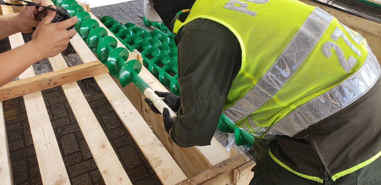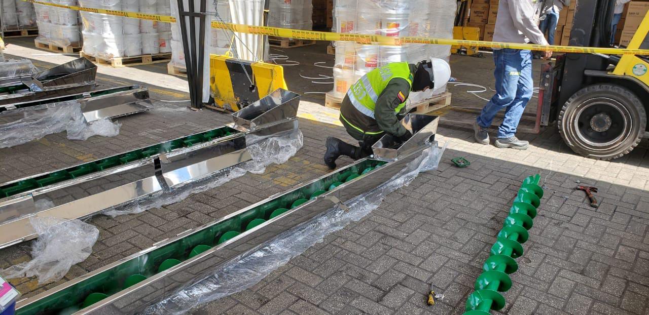La Policía Nacional de todos los colombianos, a través de la Dirección de Antinarcóticos en desarrollo del trabajo permanente que realiza en las terminales marítimas del país, logró descubrir al interior de una máquina varios kilos de clorhidrato de cocaína escondidos, a simple vista era casi imperceptible detectar el alijo, solo cuando se procede a la perforación del cilindro transportador se evidencia la sustancia pulverulenta de color blanco.