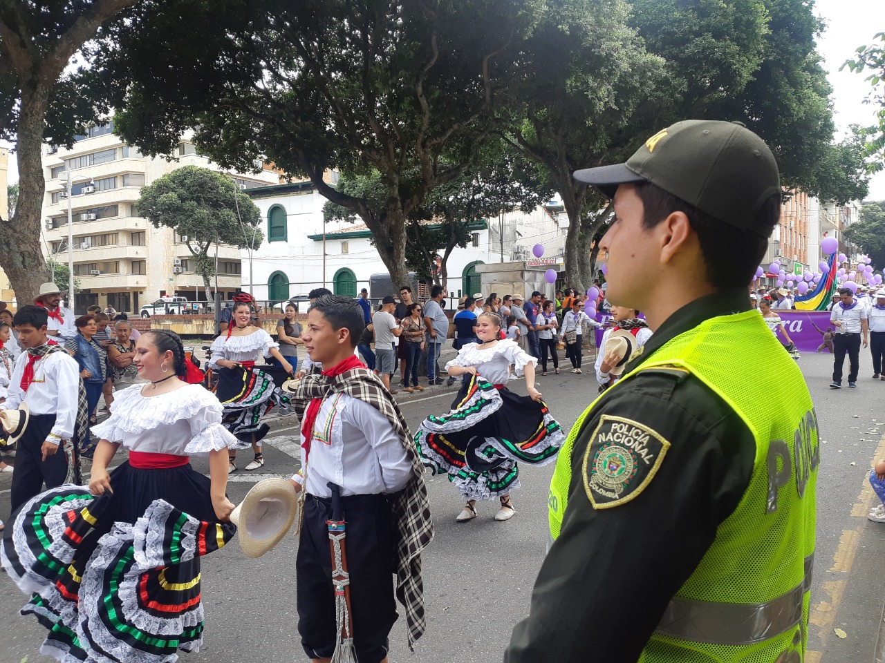 Con un importante dispositivo de seguridad la Policía Nacional acompaño a las familias santandereanas, a los visitantes y turistas de esta región, exaltando a este pueblo laborioso, emprendedor y tranquilo, representado en un imponente desfiles que refleja su identidad.