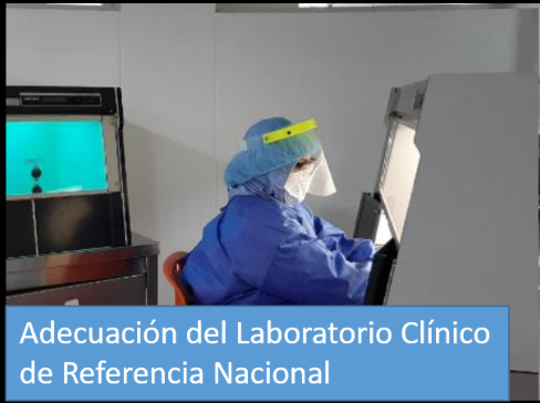 - Adecuación del Laboratorio Clínico de Referencia Nacional para la realización del diagnóstico molecular de Coronavirus, con la implementación de estándares de calidad, disposición de nuevos equipos, puesta en marcha de estaciones de trabajo, implementación de protocolos de seguridad, demarcación de zonas para tránsito seguro de las muestras y actualización de conocimiento en biología molecular.