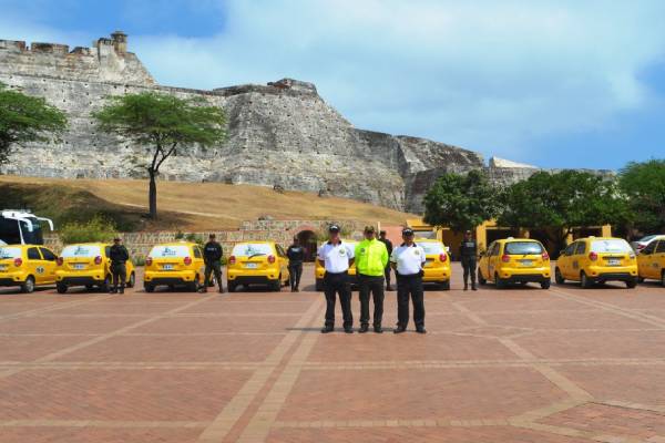 El monumento de las Botas Viejas, detrás del Castillo San Felipe fue el punto de encuentro para que más de veinte taxistas se vincularan a la campaña ´Yo no pago. Yo denuncio´, desplegada por unidades del Gaula contra los delitos de secuestro y extorsión.