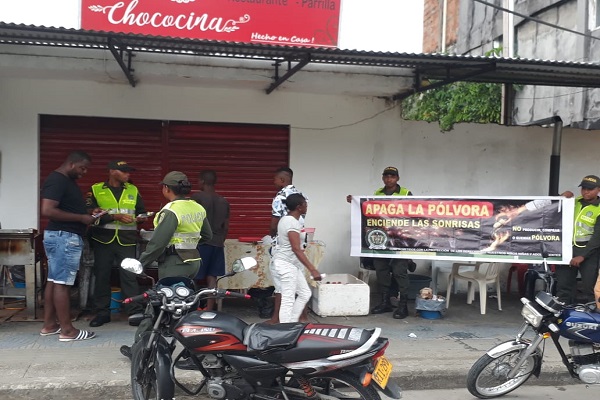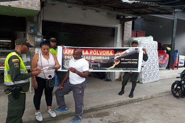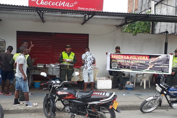 En desarrollo del Plan de Choque, “Navidad Segura, Mas Cerca del Ciudadano” nuestros uniformados de Protección infancia y adolescencia, Prevención ciudadana, Carabineros y demás unidades policiales en todo el Departamento del Chocó, con el apoyo del Instituto Colombiano de Bienestar Familiar vienen realizado campañas de sensibilización contra el uso de la pólvora con el fin de crear conciencia en padres, niños, niñas y adolescentes de lo peligrosa que es su manipulación y las nefastas consecuencias que puede traes su utilización