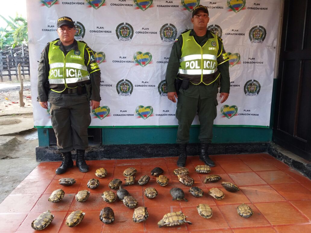 La Policía Nacional en el Departamento de Córdoba, uniformados adscritos al cuadrante vial No.2 de la Seccional de Tránsito y Transporte, quienes atreves de acciones contra el tráfico de fauna silvestre y los recursos hidrobiológicos, realizaron la recuperación de 30 hicoteas.