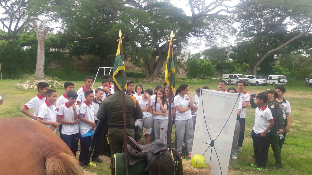 Se realizó orden cerrado con los niños, se mostró un video relacionado con el especial “misión canina” donde observaron el entrenamiento que realizan los perritos para contrarrestar cualquier acción delictiva, también tuvieron la oportunidad de montar a caballo y conocer el trabajo que realizan los hombres y mujeres que hacen parte del grupo Carabineros de la Policía Nacional.