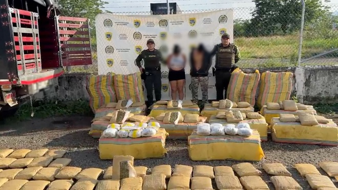 La Policía Nacional, a través de la Seccional de Tránsito y Transporte, asestó un contundente golpe a las redes de microtráfico en el departamento de Santander, con la incautación de más de 680.000 dosis de marihuana y la captura de dos personas.