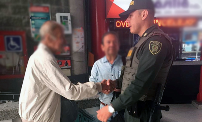 Gracias a la información suministrada por la “Red de Participación Cívica”, en el marco del Plan Navidad Segura “Más cerca del ciudadano”, el Departamento de Policía Meta ayudó a un adulto mayor a volver a su natal Manizales – Caldas, de donde solo recuerda haberse montado en un bus y sin saber de su rumbo llegó a San Martín – Meta. Fue acogido por la comunidad, autoridades y los policías de San Martín, quienes preocupados por su integridad hicieron las gestiones necesarias para que se reencontrara con sus familiares.